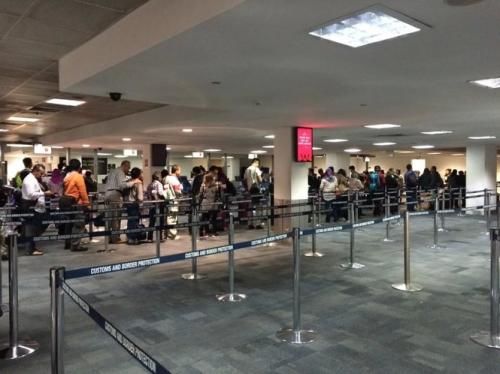一名中国游客正悠哉悠哉地准备入关旅行,享受自己念叨已久的境外之旅。