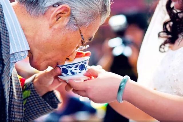新人给长辈奉茶的瞬间: